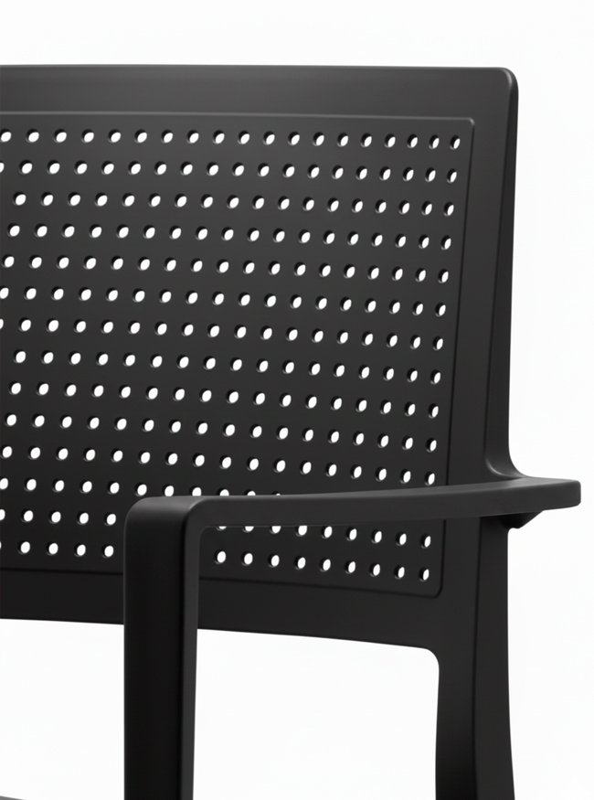 Silla de diseño moderno y funcional, perfecta para restaurantes, cafeterías y terrazas. Fabricada en tecnopolímero reforzado con fibra de vidrio en color antracita, destaca por su resistencia al impacto, a la intemperie y al uso intensivo, siendo apta para interiores y exteriores. Cuenta con reposabrazos integrados, que mejoran la comodidad del usuario sin comprometer la ligereza ni la estabilidad. Su diseño ergonómico favorece una postura cómoda y relajada, ideal para un uso prolongado. Con unas dimensiones de 57 cm de ancho, 52 cm de fondo y 84 cm de alto, esta silla es apilable, facilitando su almacenamiento y optimizando el espacio en entornos de alta rotación. Disponible en varios colores, es una opción práctica y versátil para negocios que buscan mobiliario duradero, fácil de mantener y con un diseño contemporáneo.