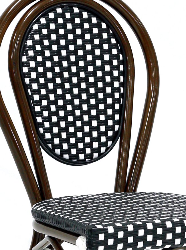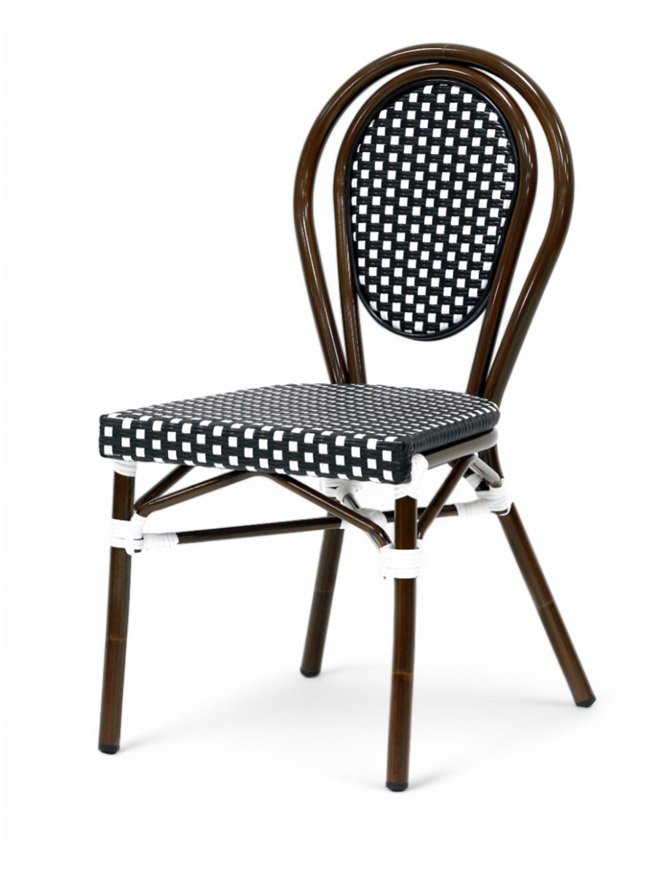La silla apilable de hostelería Addison es una pieza icónica de estilo parisino, perfecta para restaurantes, cafeterías y terrazas que buscan un mobiliario elegante, funcional y duradero. Su diseño clásico, inspirado en los tradicionales bistrós de París, aporta un toque sofisticado y acogedor a cualquier espacio de hostelería. Fabricada con una estructura de aluminio con acabado efecto madera, esta silla ofrece la calidez visual de la madera natural con la resistencia, ligereza y durabilidad del metal, asegurando un rendimiento óptimo en entornos de uso intensivo. Su respaldo redondo y asiento de ratán sintético bitono en negro y blanco refuerzan su estética vintage y artesanal, evocando el encanto de las terrazas parisinas. Además, el ratán sintético destaca por su alta resistencia a la humedad y a los cambios climáticos, lo que la convierte en una opción ideal tanto para interiores como exteriores. Medidas 45x58x89,5cm Con unas dimensiones de 45 cm de ancho, 58 cm de fondo y 89,5 cm de alto, la silla Addison ofrece una ergonomía excepcional sin comprometer el espacio. Su diseño apilable facilita su almacenamiento y optimiza la gestión del mobiliario en establecimientos con alta rotación. La silla Addison es la elección perfecta para negocios de hostelería que desean combinar elegancia parisina, comodidad y durabilidad, garantizando una experiencia única para sus clientes en un entorno estilizado y profesional.