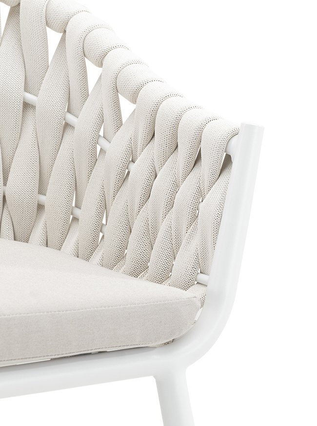 El taburete Vieste combina una estructura de aluminio robusta y ligera con un envuelto en textilene grueso, ofreciendo una solución duradera y de fácil mantenimiento para entornos de hostelería. Su cojín ergonómico aporta confort adicional, haciendo de cada asiento una experiencia agradable.