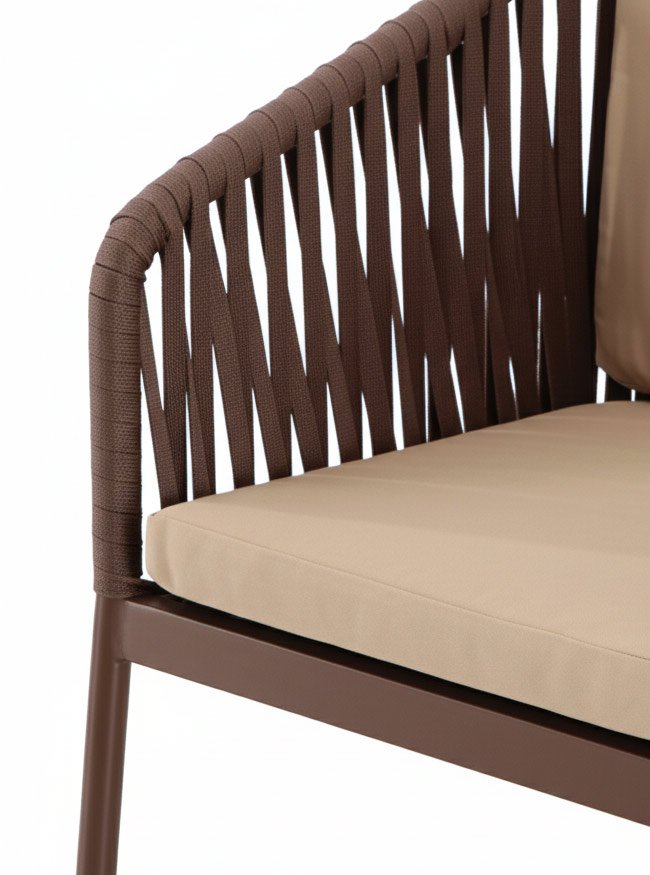 Taburete de bar de aluminio y cuerda con cojín marrón – Mercer
