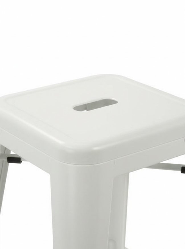 Con unas dimensiones de 45x45x76 cm, ofrece una altura adecuada para barras y mesas altas, manteniendo un equilibrio entre robustez y ligereza. Su estructura simple y sin respaldo aporta versatilidad y facilidad de almacenamiento, permitiendo apilar varios taburetes cuando no están en uso. Además, incorpora reposapiés reforzados que mejoran la comodidad del usuario y proporcionan mayor estabilidad.