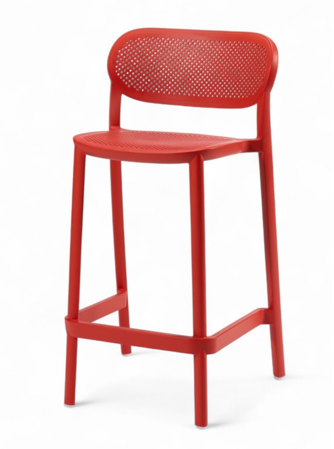 El taburete Berat combina ligereza, resistencia y un diseño contemporáneo, convirtiéndose en la elección ideal para barras de cafeterías, terrazas y restaurantes que buscan funcionalidad sin renunciar al estilo. Fabricado en tecnopolímero de alta resistencia, este taburete es perfecto para espacios exteriores e interiores, soportando el uso intensivo típico de entornos de hostelería.