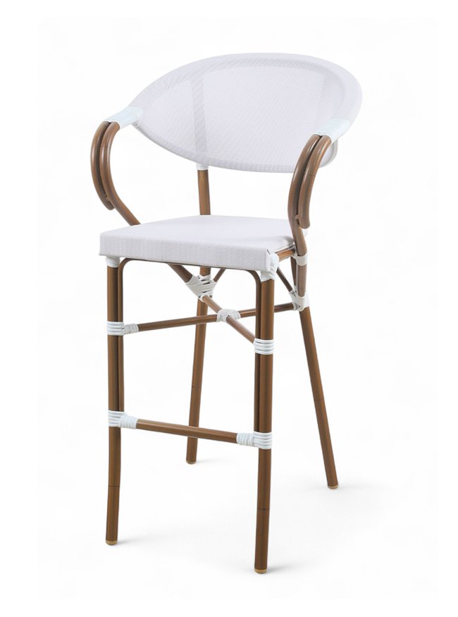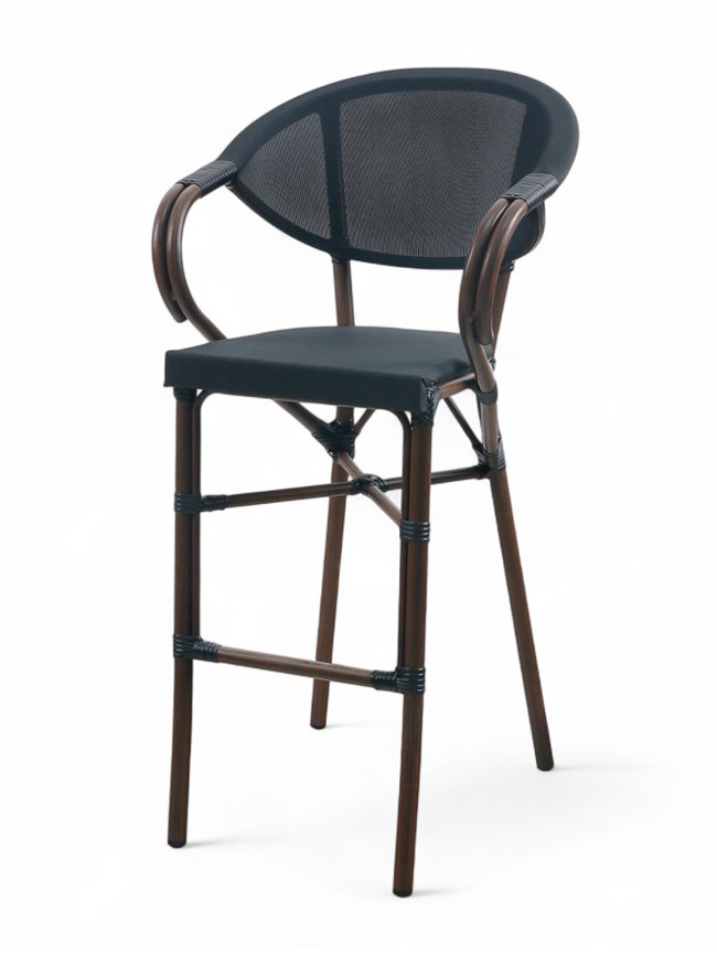 Los taburetes deben ser resistentes, con la altura justa para la barra y materiales que aguanten el ritmo sin perder estilo.