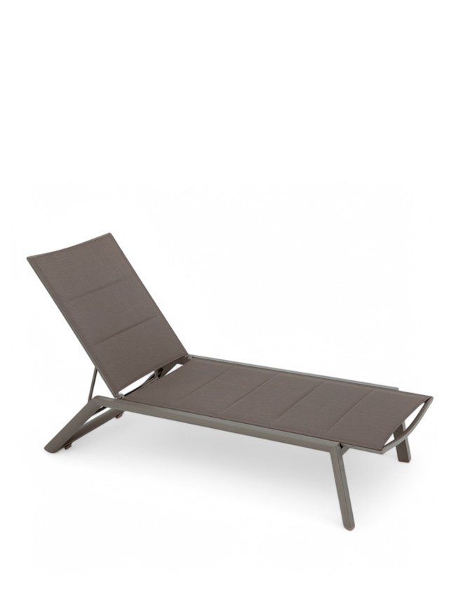 Tumbona para hoteles de aluminio taupé y textilene con ruedas - Shore